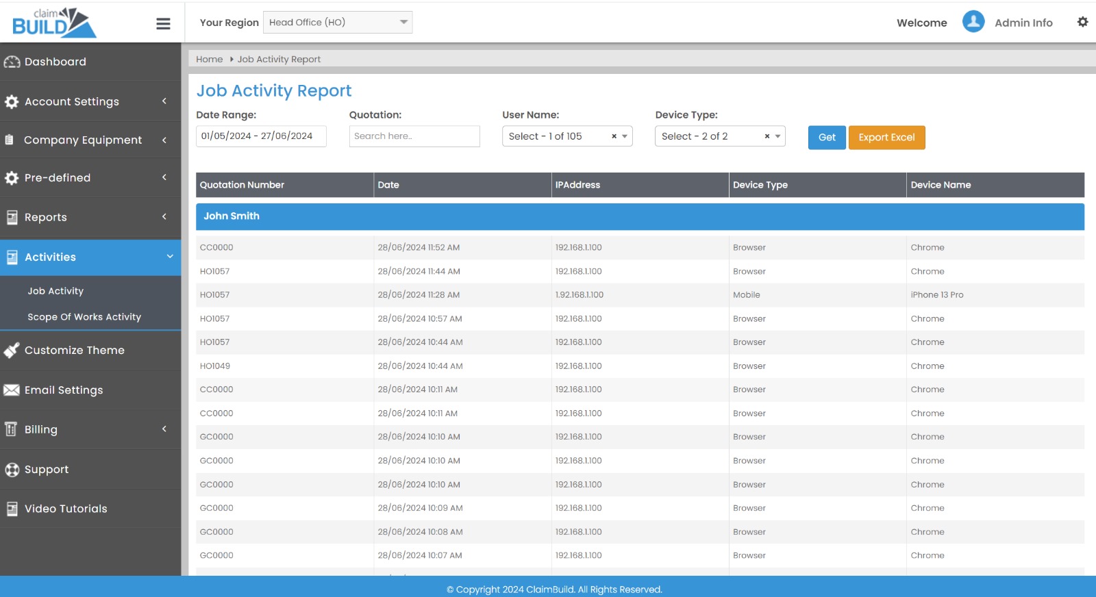 Understanding where your assets are and knowing what revenue they return is critical to business health and decision-making. In ClaimBuild, you can be assured your stock is always accounted for.