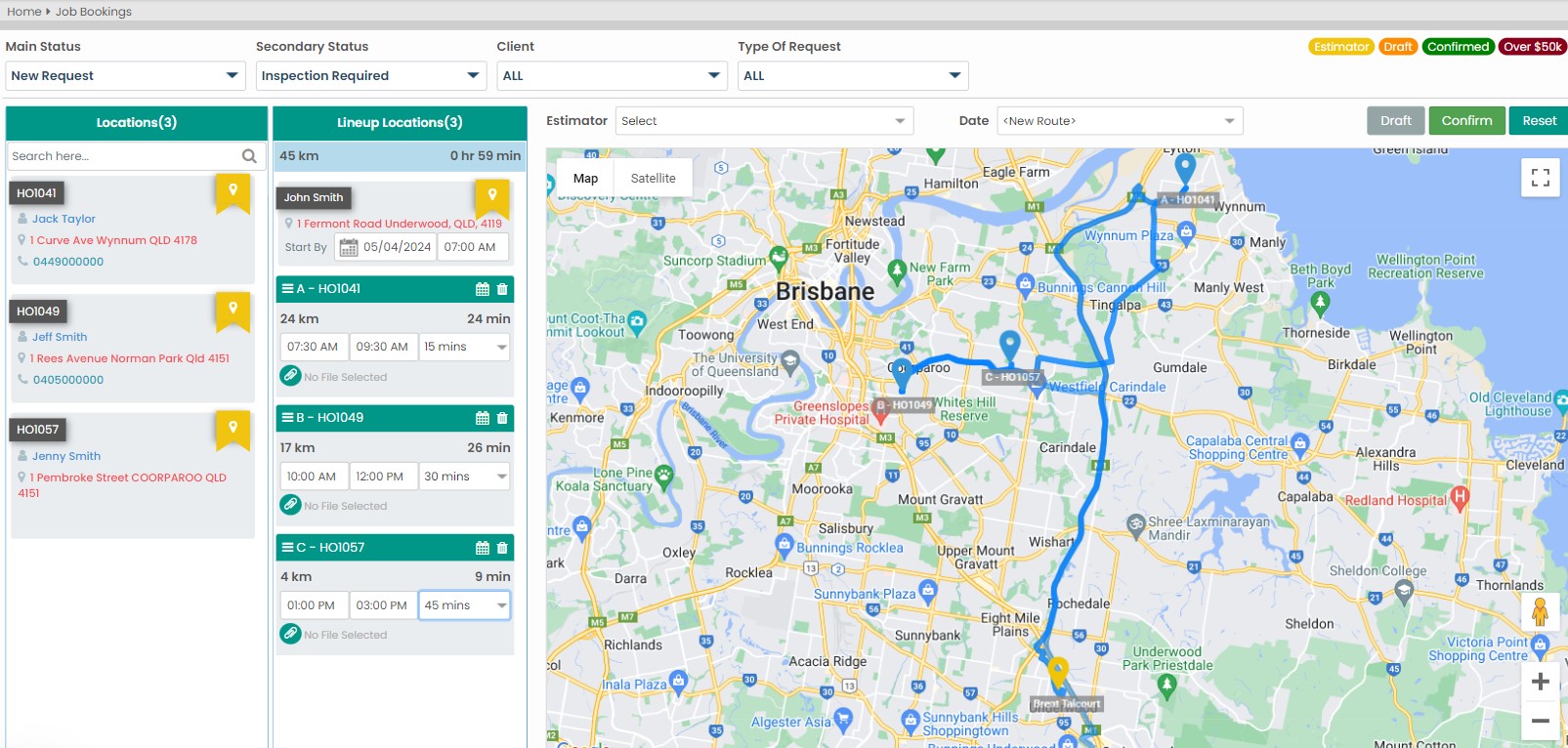 Allocating all details to the job booking such as any attachments needed. Drag and drop of different claims allows the end user to plan for the best utilisation possible.