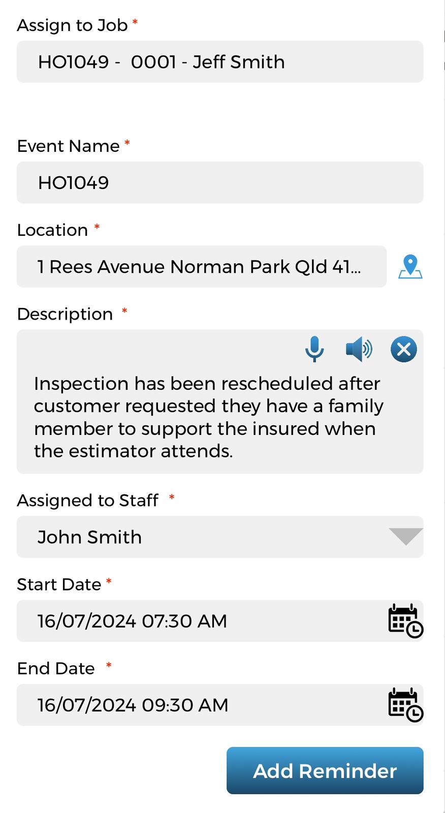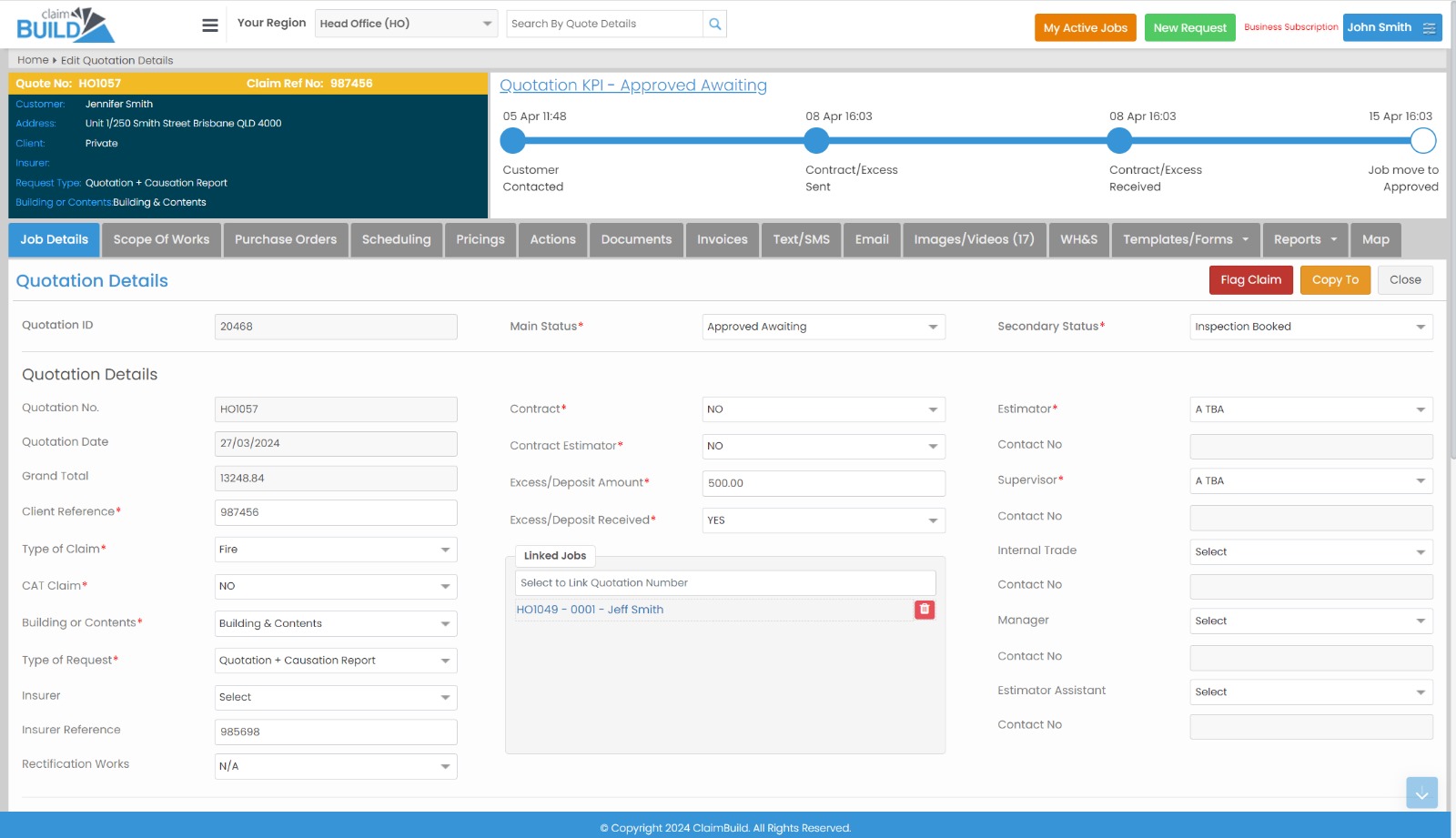 Gain the capability to capture and triage essential claim needs efficiently. The job details hub allows seamless utilisation of regions, identification of information types, and comprehensive capture of all client and customer details.